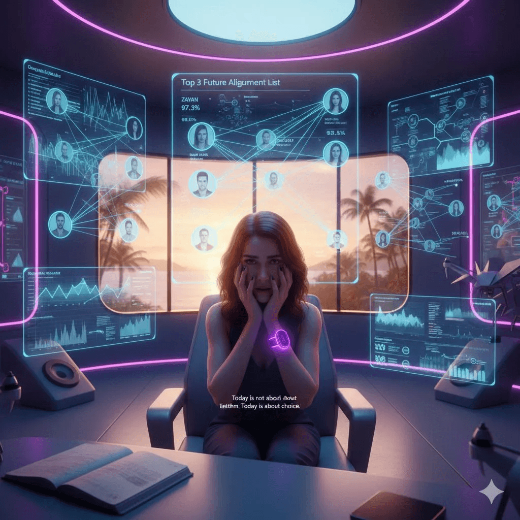 Sharp, tender, and uncomfortably relevant. This story asks the final question of the Age of Love: When everything can be predicted and perfection is programmable… what remains of human courage?