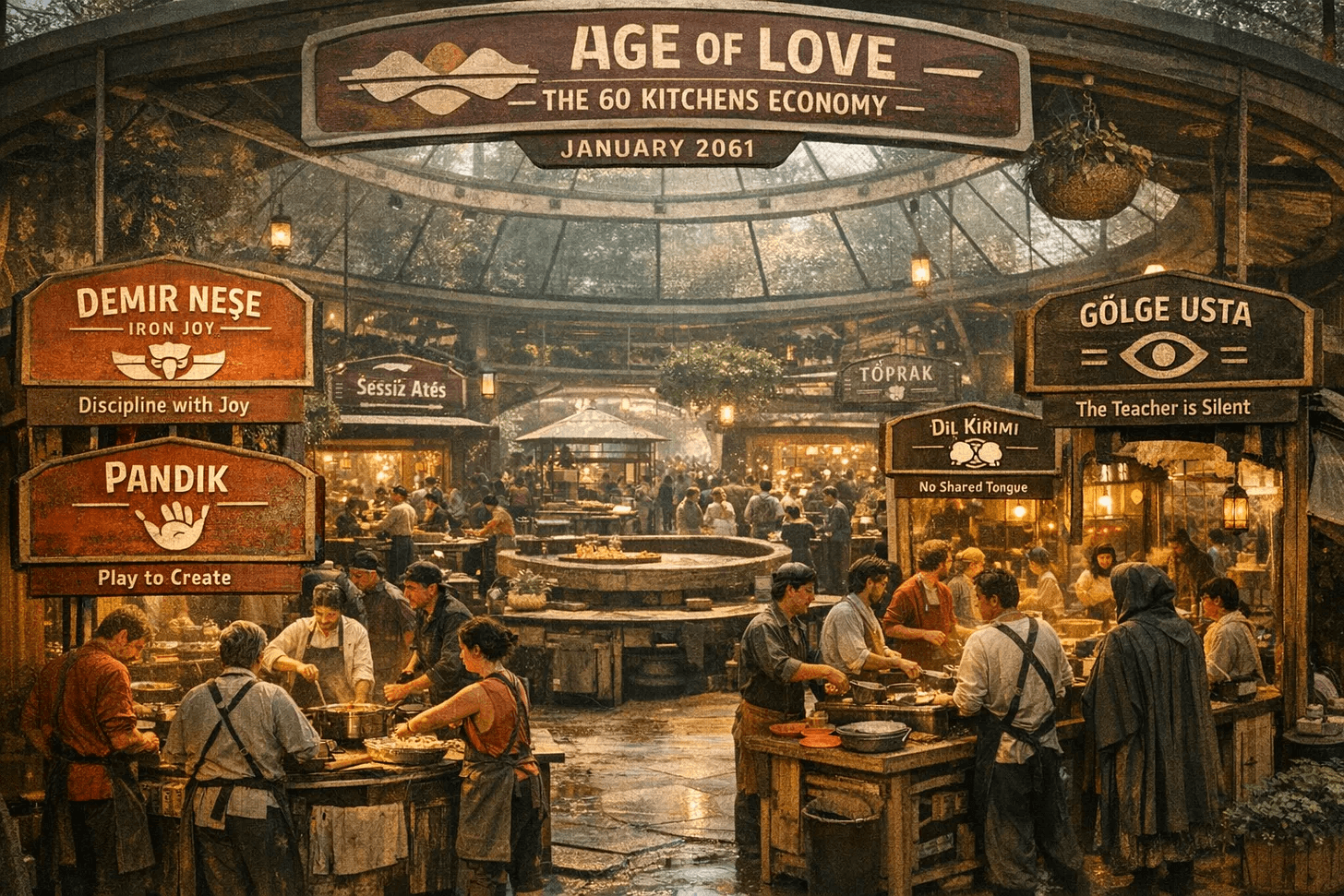 Haaak, my friend, haak! In this twenty-sixth archive entry, Hakan Ozan returns to his warm meddah voice and takes us straight into the living heart of 2061’s new economy — the sixty kitchens of Navadra Farm.