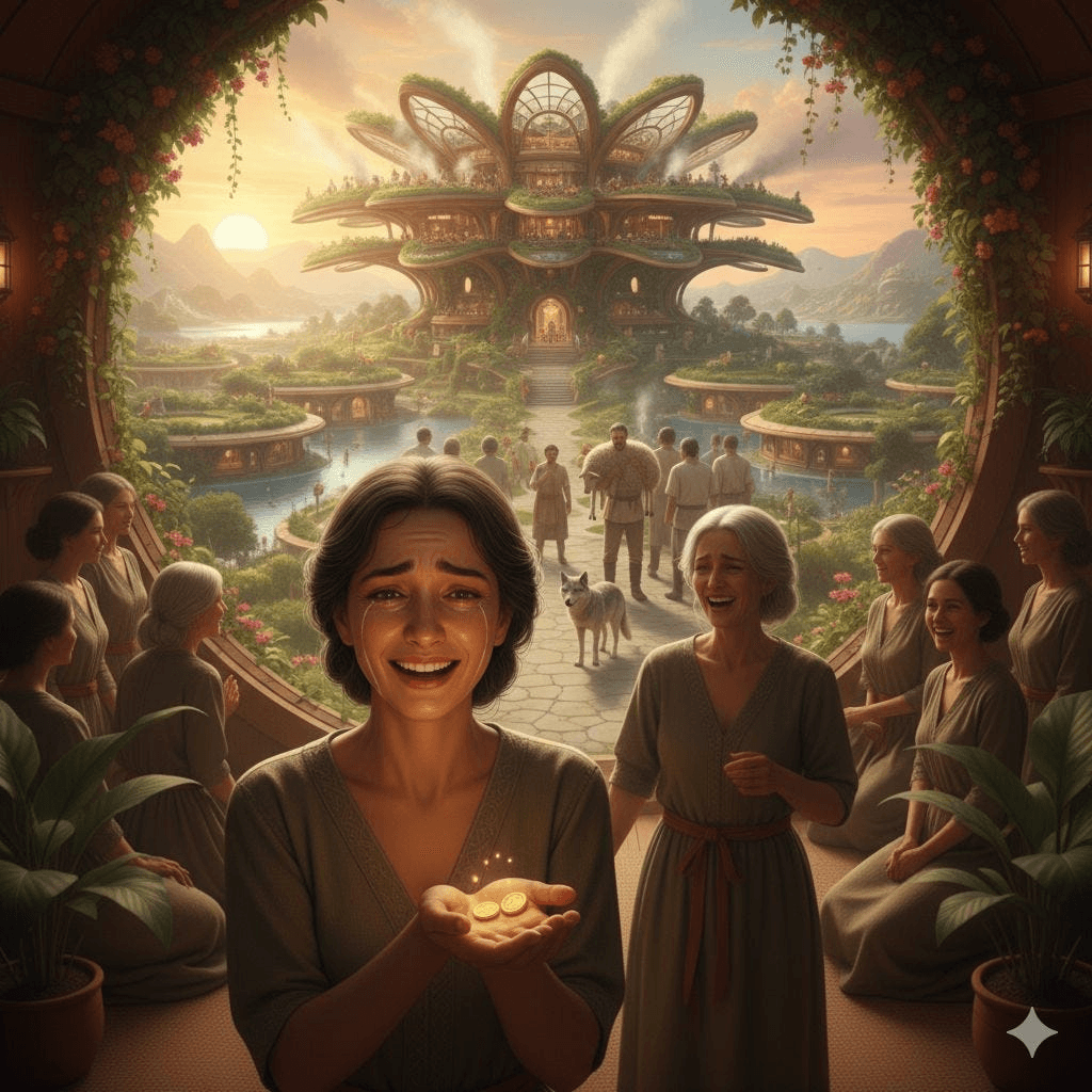 Beautiful, peaceful, and full of quiet wisdom. This story reminds us that the future is not only imagined — it is grown, one seed, one bucket of water, and one shared meal at a time.