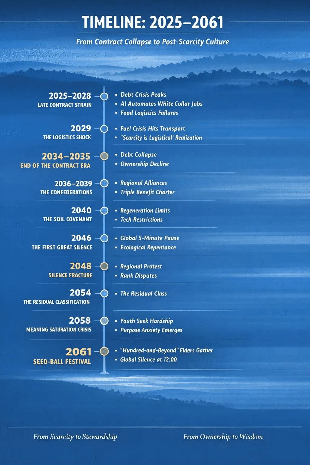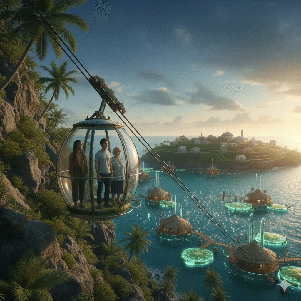 This story moves from the quiet shock of the border into the everyday reality of 2063: shared kitchens, ocean laboratories, collective abundance, and a life where your skills and your heart truly matter.