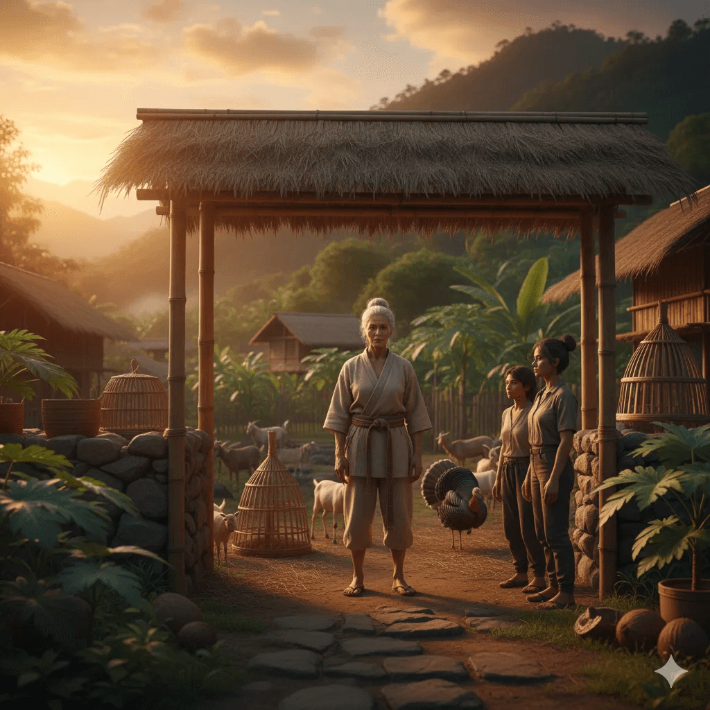 In the golden light of Viti Levu, three young people spend one ordinary day working on a regenerative farm. They carry water, turn compost, feed animals, and learn the sacred rule of the new world: every task must bring three benefits — to the body, to the land, and to the community.
