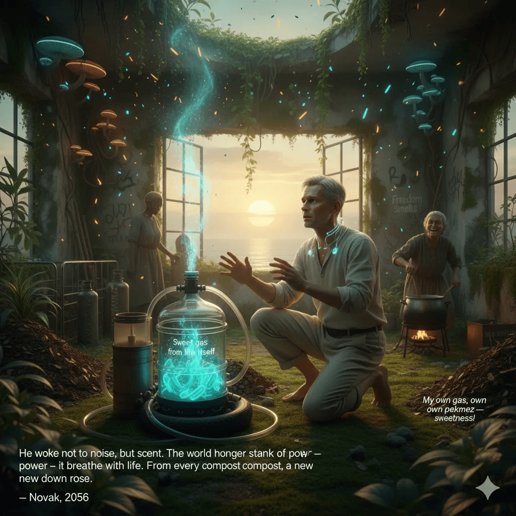 In 2056, Novak wakes up into a world that smells… different. The air carries layers of sea salt, warm soil, fermented fruit, and something deeply human. Artificial perfumes are gone. Every scent now tells a story of honesty, dignity, and connection.